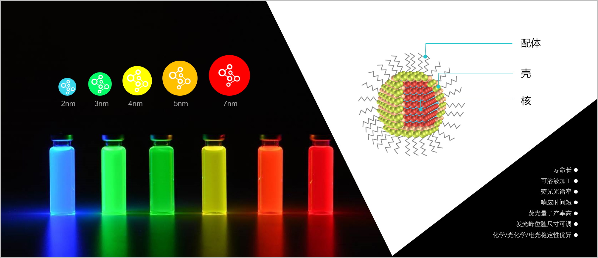納晶科技擁有量子點半導體材料的核心專利,具備持續研發能力、規模制造能力、應用技術和產品的整體解決方案開發能力。擁有年產50噸量子點濃縮液生產能力,可提供多種結構量子點材料,包括含鎘量子點、無鎘量子點、電致發光量子點等產品。